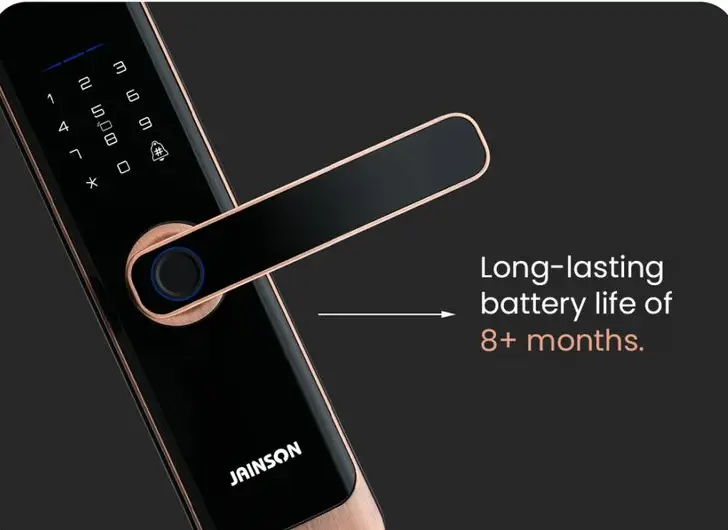 The Jainson Smart Lock is designed for most standard doors. With item dimensions of 30 × 7 × 7.2 cm and a strong aluminium build, it fits well on wooden and metal doors that support biometric smart locks.